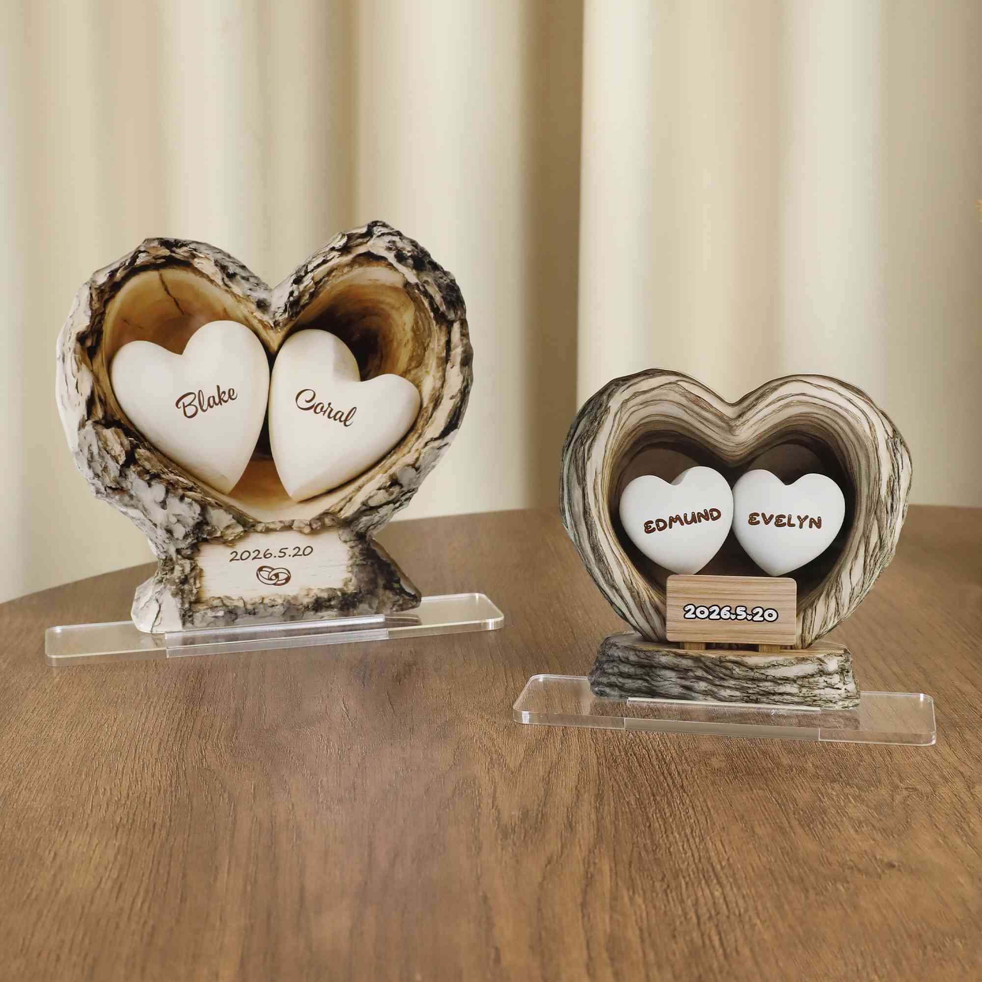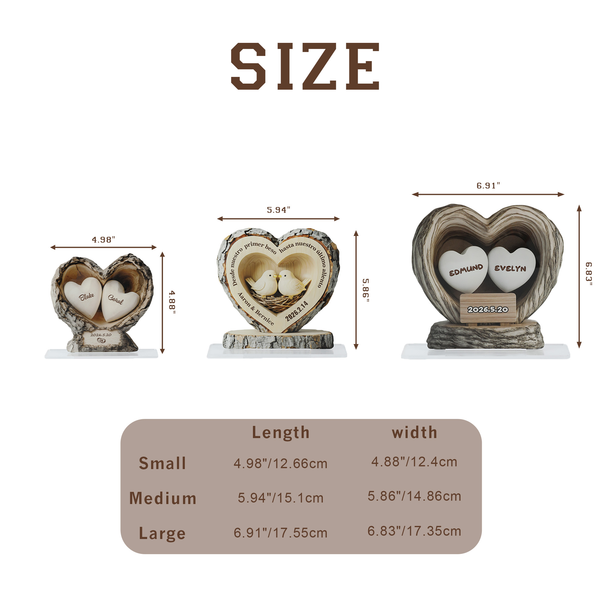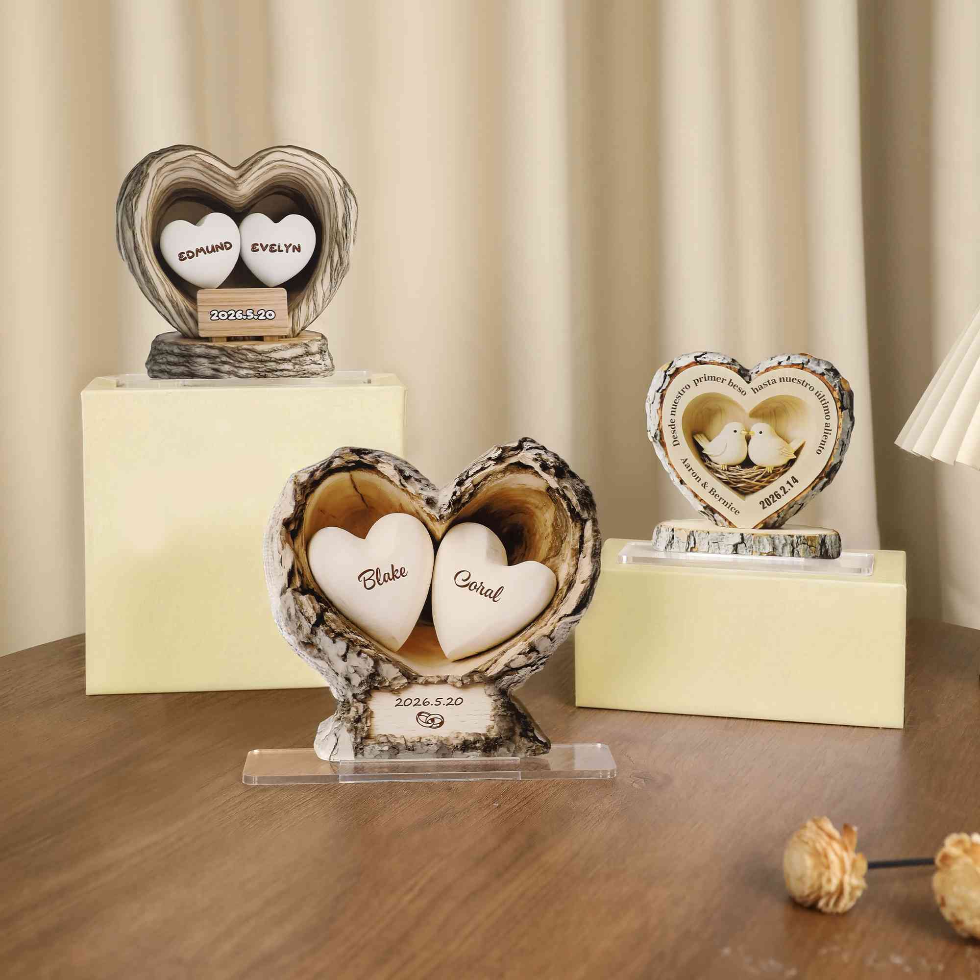 Hand-Carved Heart Design - The hollow center holds two smooth stones or birds, representing the couple’s bond—perfect for marking your first kiss, wedding, or anniversary.