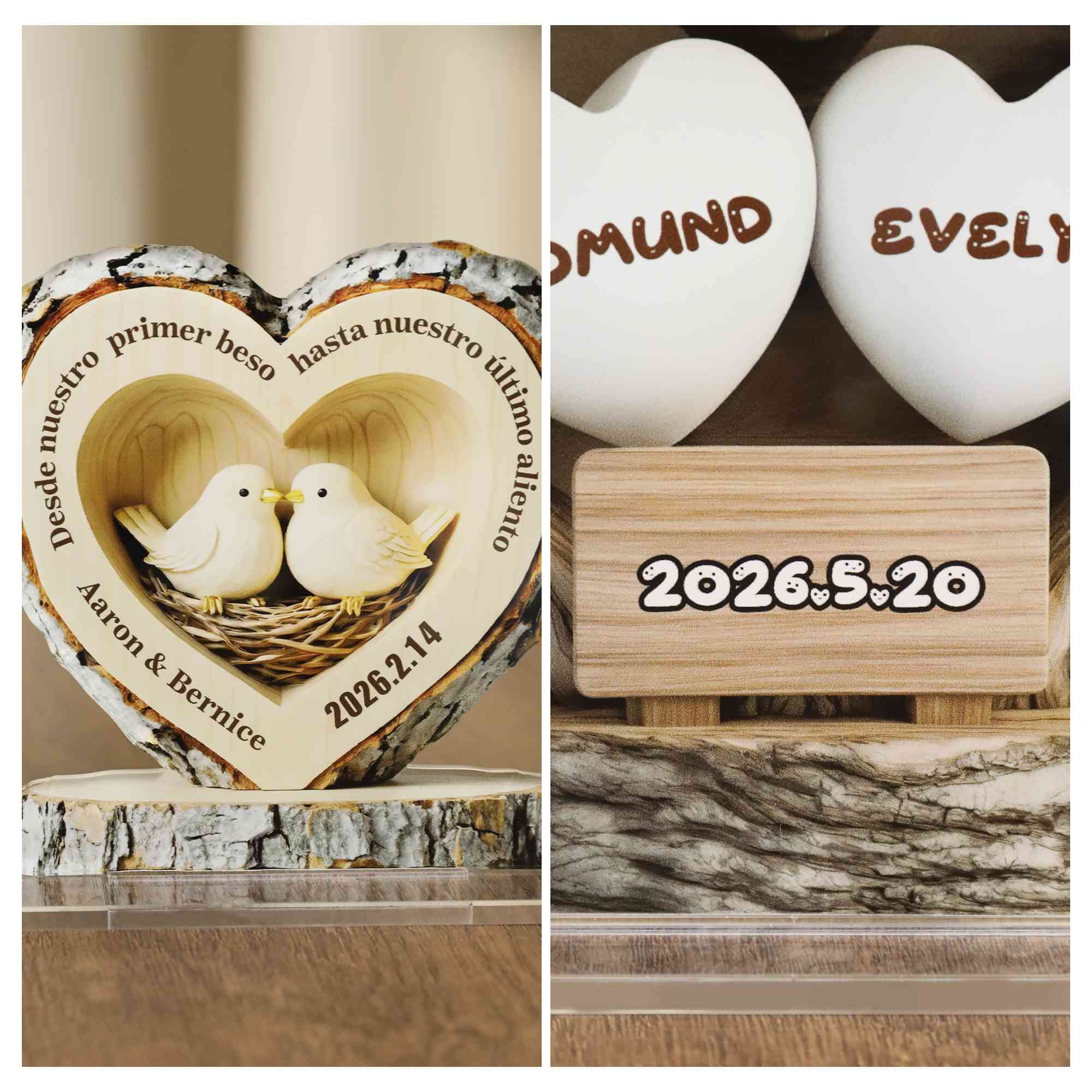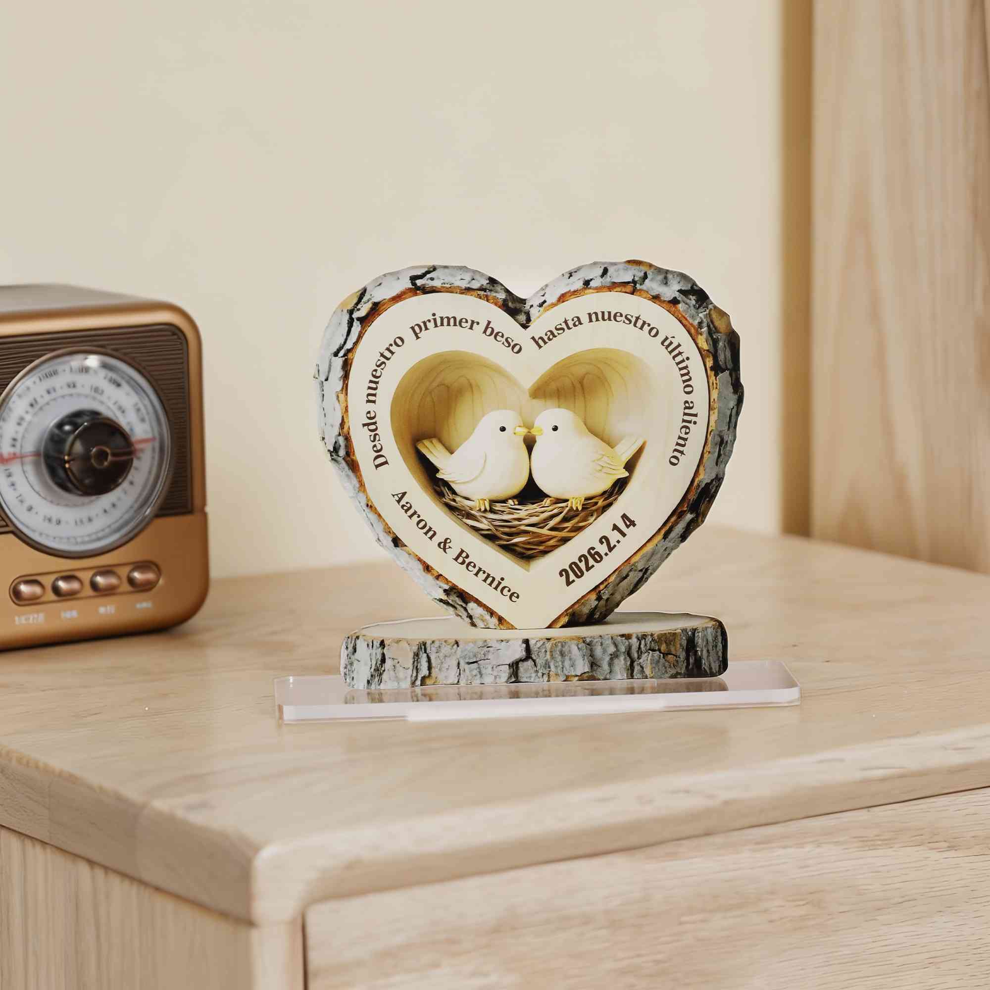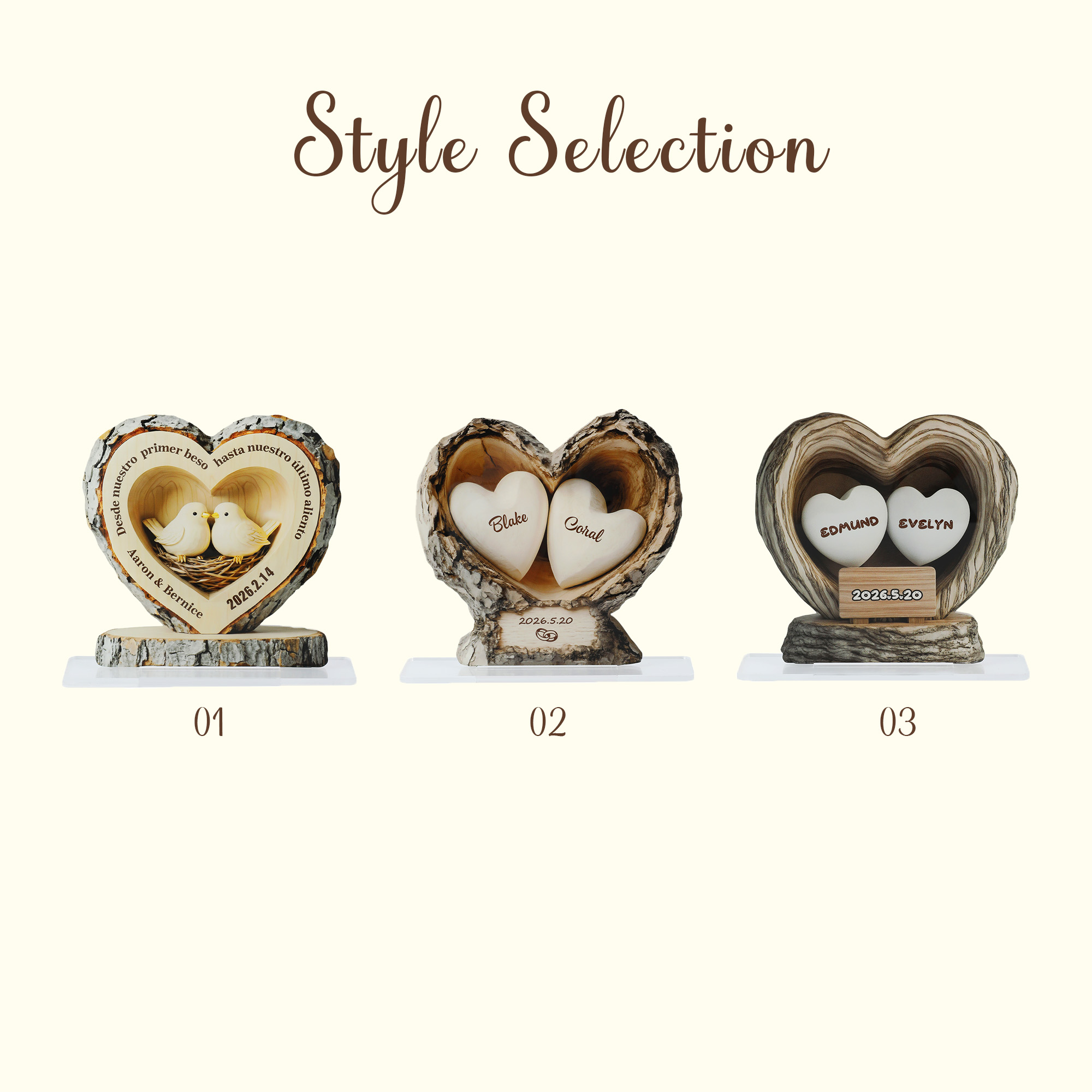 Hand-Carved Heart Design - The hollow center holds two smooth stones or birds, representing the couple’s bond—perfect for marking your first kiss, wedding, or anniversary.